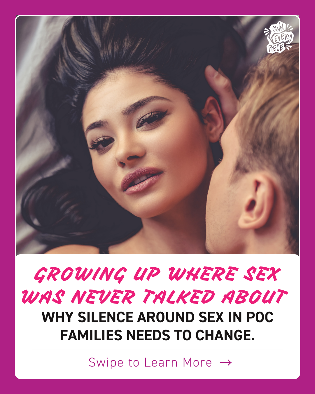 Because we never talked about it at home, I grew up thinking sex was something secret and probably shameful. I believed there was something wrong with me for even being curious. I didn’t realize it at the time, but silence and shame show up a lot in POC families when it comes to sex. It’s treated like a taboo topic, and in a way, that keeps everyone in the dark.